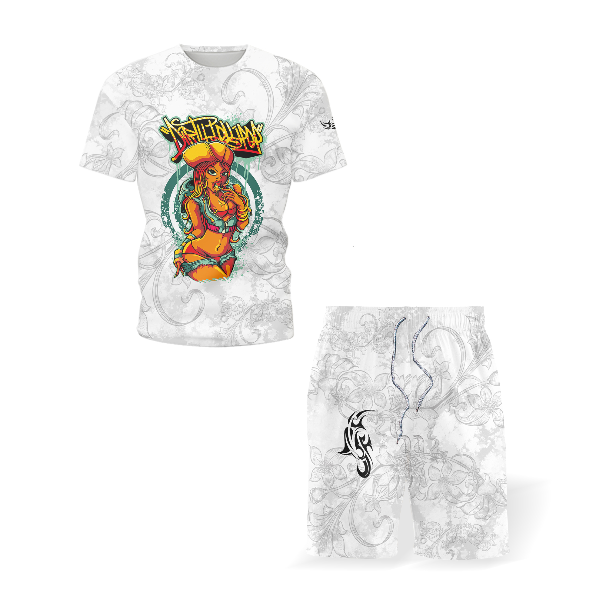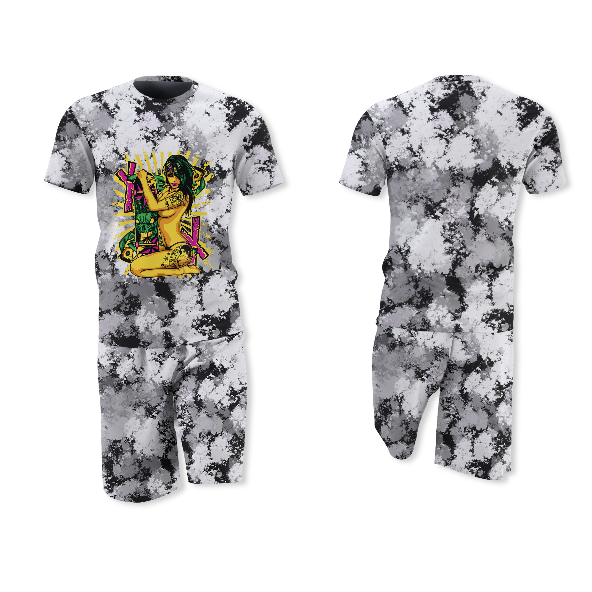 3D printing men's and women's short-sleeved T-shirt shorts sports suit cross-border supply wholesale